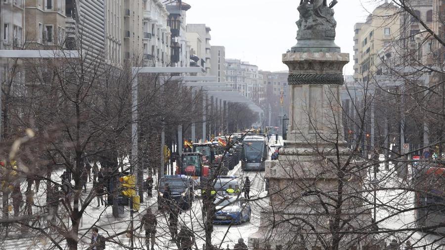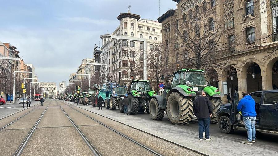 Una decena de tractores han llegado hasta el paseo Independencia de Zaragoza. También están llegando al centro de la ciaudad por la avenida Navarra y el paseo María Agustín.
