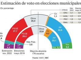 El PP ganaría las elecciones municipales por cinco puntos al PSOE