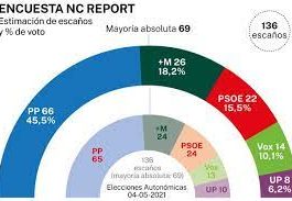 Encuesta NC Report. Ayuso, más cerca de la mayoría absoluta un año después del 4-M