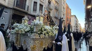Minutos después, el broche final lo ha puesto, como es tradición, la Virgen de los Dolores. Rodeada de claveles y rosas blancas, su paso siempre es de los más admirados por los entendidos de esta festividad. Tras este, se ha dado paso a un grupo de “manolas”.