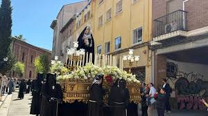Pasadas las 11.00 horas, un pequeño grupo de mujeres salía de la Iglesia de San Pablo, ataviadas todas con vestimentas negras de “viuda”, con un velo que impedía ver el rostro, vela en mano y gesto serio para llorar por los acontecimientos del Viernes Santo. De esta forma, daba comienzo la procesión más conocida de la Congregación de Esclavas de María Santísima de los Dolores.