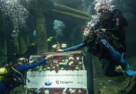 Los mayores protagonizan la Ofrenda de Flores subacuática a la Virgen del Pilar en el Acuario